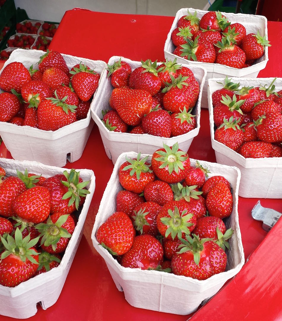 I am a little late with this post – but as you can see the wait is over! The strawberry huts are now open! Hoorah! They’ve been open a couple weeks already, which means our fridge and bellies have been overflowing with berry goodness.